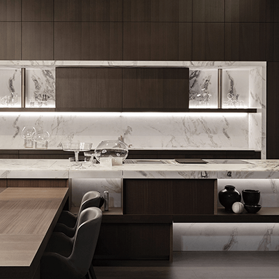 TM Italia 的客製化服務提供從廚房到客廳、牆體系統、浴室和技術家具等廣泛的解決方案。1998年,TM Italia 引進了一套創新的生產系統,使其能夠在採用工業標準化流程的同時,生產出獨一無二的產品。 包括與家居環境及其他場所和智慧家居系統融合的解決方案,適用於住宅、零售和酒店業。