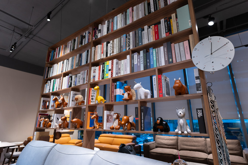 我們都知道好的櫥窗設計是吸引顧客進店的第一印象,因此需要具有引人入勝的特點。而位在紐約家具設計中心新莊思源旗艦館,手扶梯3F出來的後方,便可看見細見美學─門口還有可愛的獅子娃娃家飾品,一起歡迎客人的到來,便是透過櫥窗設計陳列及布置的進口家具產品,以及生活日常中的點綴來講述家的模樣,從大大的落地玻璃中可綜觀整個展示的空間,你會發現!就連牆上的畫作、時鐘家飾品等等都是經過老闆娘的精心挑選及布置。