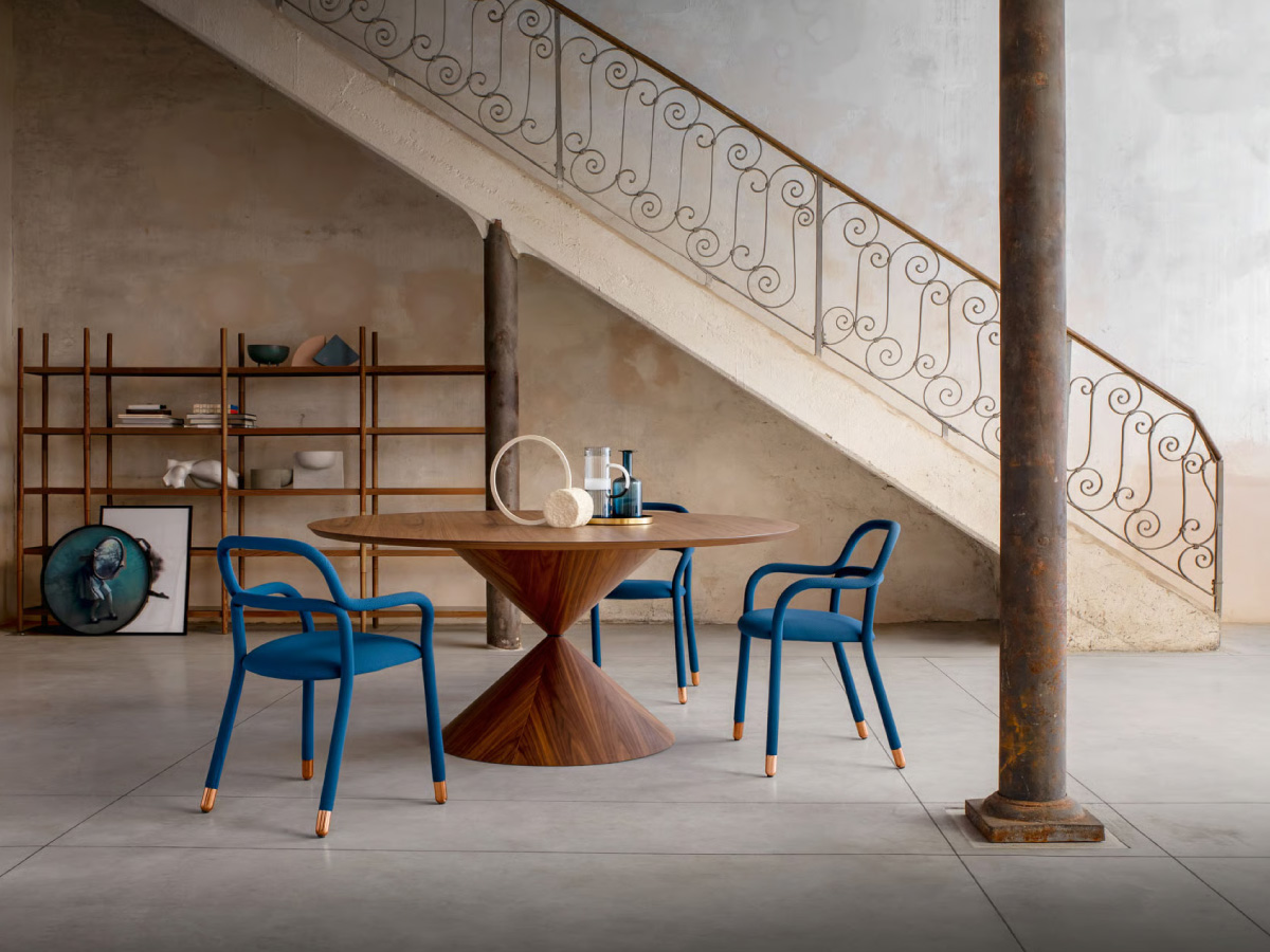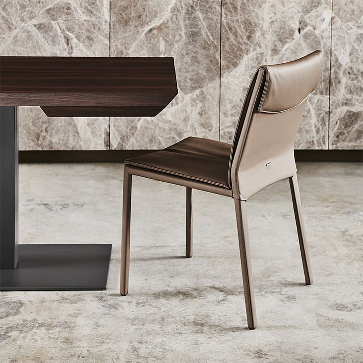 義大利現代家具品牌 Cattelan Italia ,向來以大膽卻不失細膩的設計語彙聞名,而 Rhonda 餐椅,正是他們揉合「柔軟」與「挺拔」兩種看似衝突特質的作品,宛如一首用皮革與布料為空間譜寫的訂製服讚美詩。