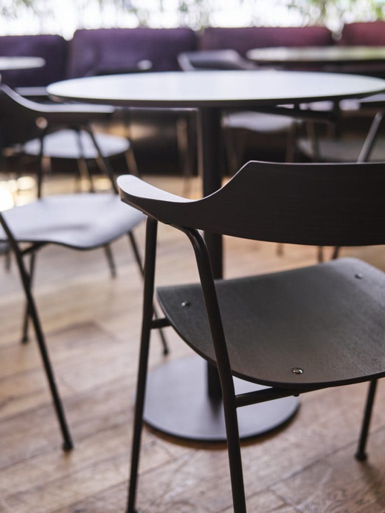 這張椅子偶爾被誤會「椅背是蚊子的翅膀」,但它之所以被命名為 Mosquito,其實源於它那向兩側微微上揚的坐面輪廓。而當把目光轉向它的背面,會發現它美麗背影的特質,在於那根連接椅背與坐墊的中央曲木主幹。