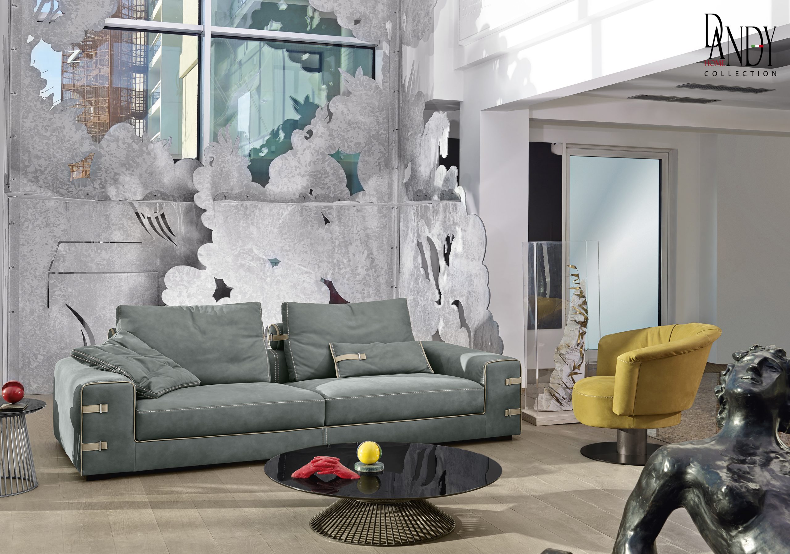 組合式皮革軟墊沙發具有一些與眾不同、複雜精緻的時尚特徵——側邊外緣搭配厚實的超大拉鏈,皮革或羅緞中央縫隙採用全新開口縫線,彰顯著Gamma卓越的裁縫工藝。而這款沙發所採用的非正統設計,賦予了其青春活力的現代氣息。