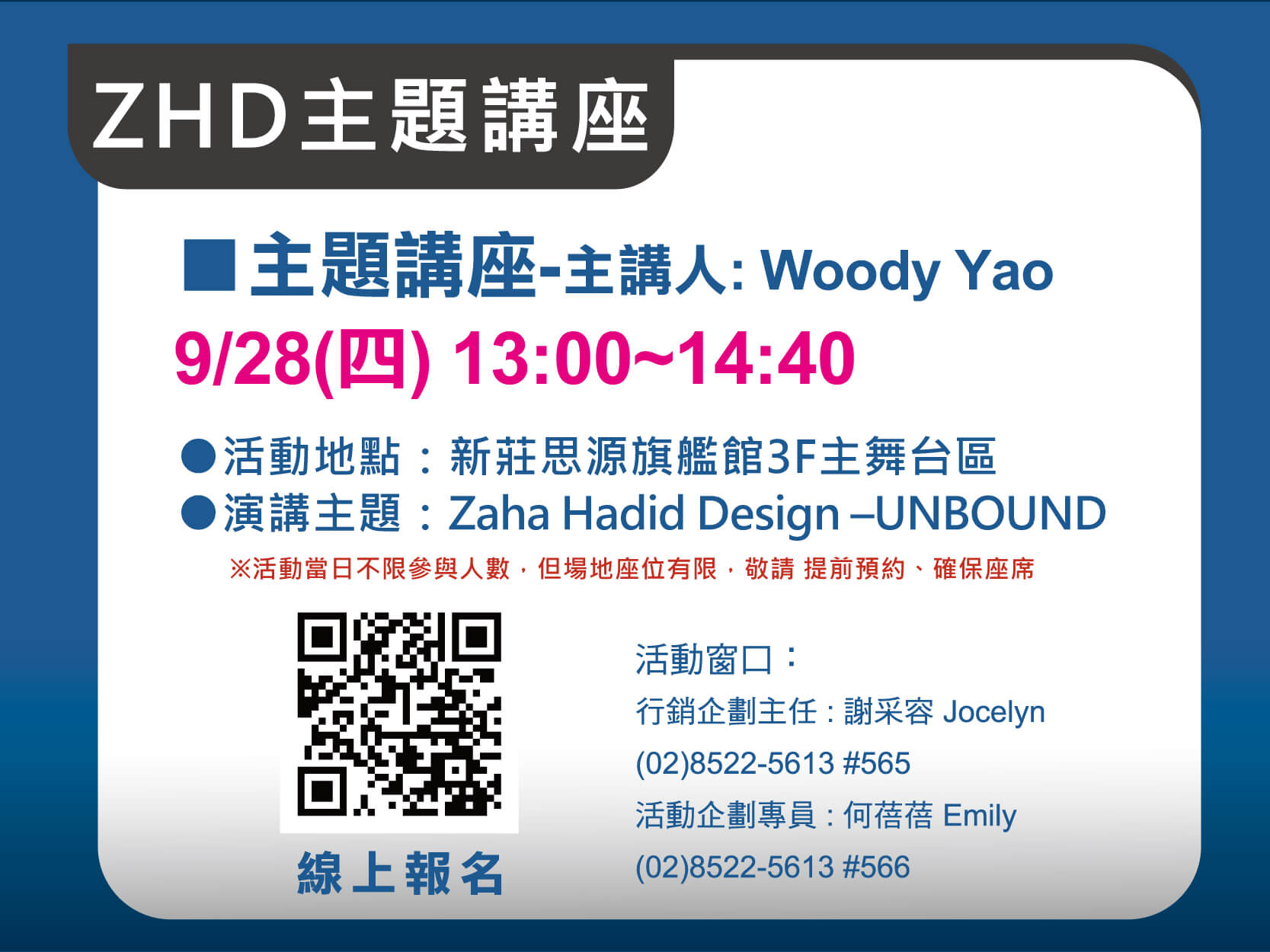 ( 活動當日不限參與人數,但場地座位有限,敬請 提前報名 確保座位 )
