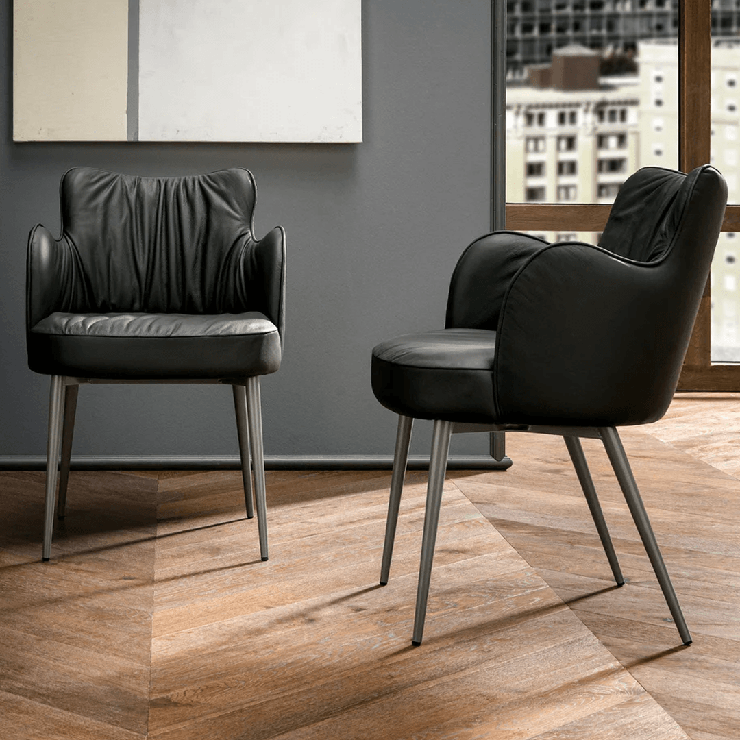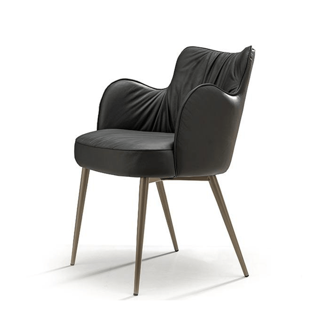 Minnie Soft 扶手椅兼具舒適性與多功能性。寬大的座椅和舒適的靠背帶來溫暖的擁抱,專為放鬆而設計。流暢柔和的線條,讓您彷彿置身於溫暖的懷抱。錐形椅腳增添了一絲現代感,更提升了其適應性。無論是餐桌、臥室角落,或是玄關,都能輕鬆融入各種空間。