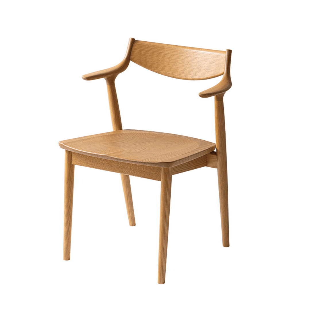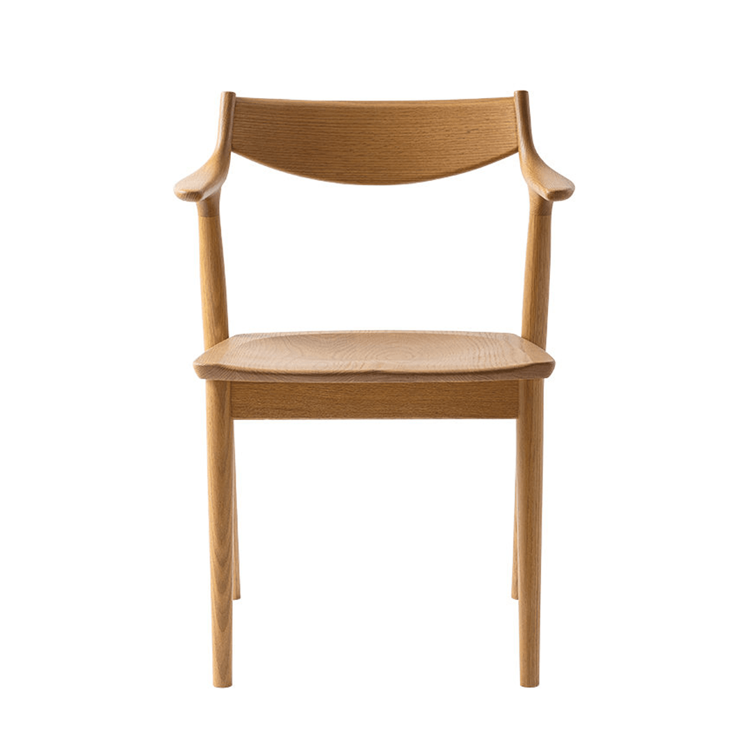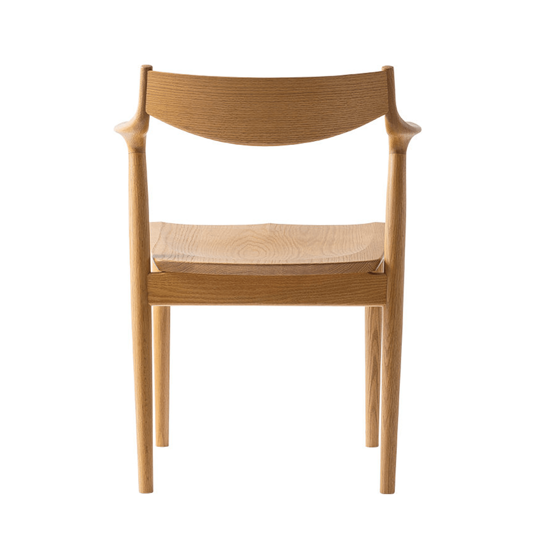 濱本工藝 由濱西邦和(Kunikazu hamanishi)設計的 No.7000餐椅,椅架採用曲木加工技術,打造舒適貼合的椅背及弧形扶手,展現了濱本工藝職人的精湛技術。扶手為短扶手設計,可掛置於桌面方便日常清潔,亦可盤腿坐於椅面不受阻礙。