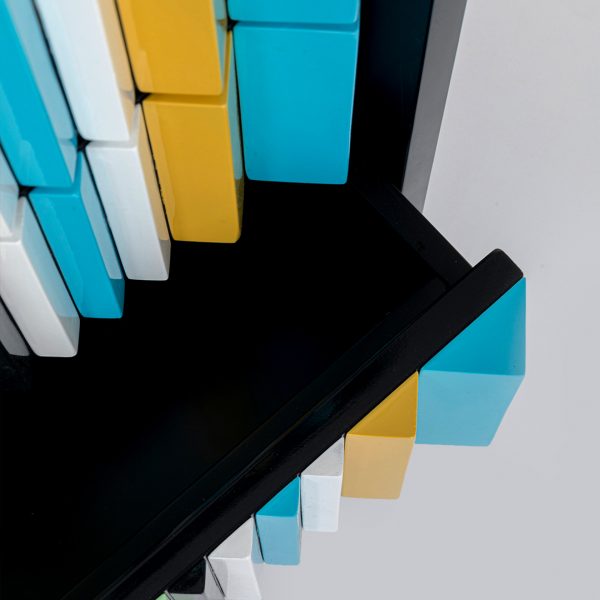 正面的木材拼接設計在永續傢俱的探討中誕生,善用生產過程中產生的零碎木料人工篩選組裝,永遠無法找出相同的另一部件!