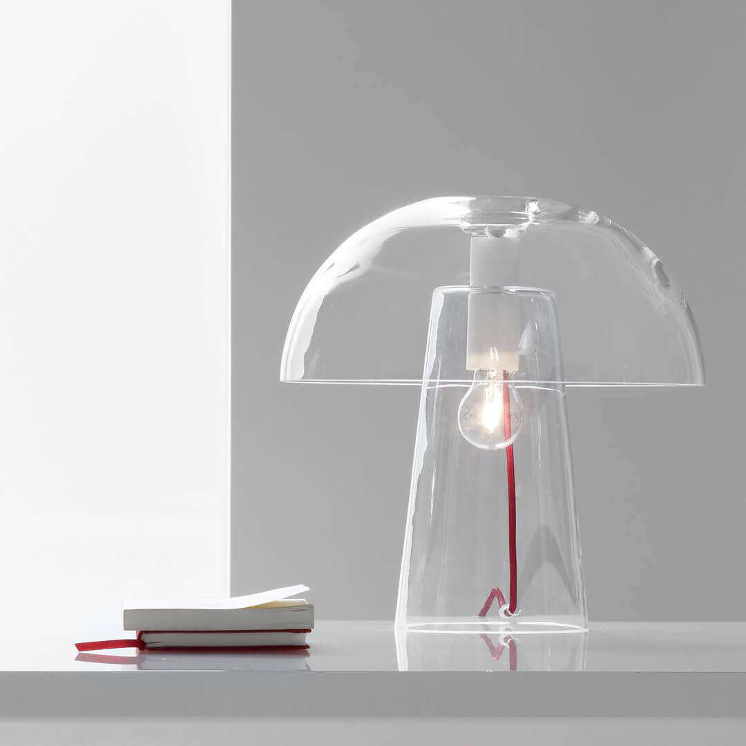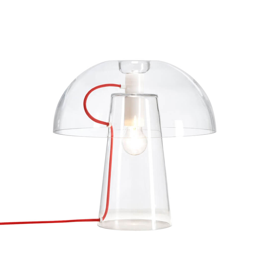 CHANTAL 桌燈 220V,檯燈底座和燈罩均為透明手工吹製玻璃。紅色紡織電線,黑色手動開關。
