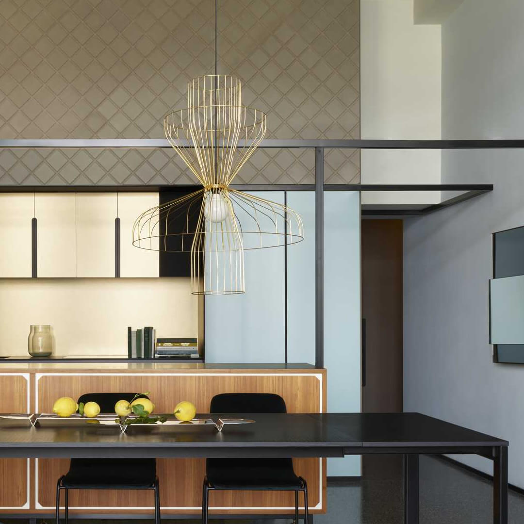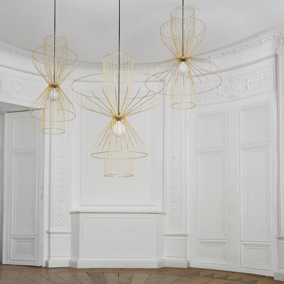 2小1中1大含一組220V燈具組成,從「PARACHUTE」燈具名稱中,就可知道靈感來自於降落傘,其分別由三個大中小鋼絲元素組合重疊在一起而成;這些組合擁有高度的自由性,可以呈現出一到六種不同的交疊外型,各自具有不同風味的優雅氣質,能夠隨著時間與喜好而改變。