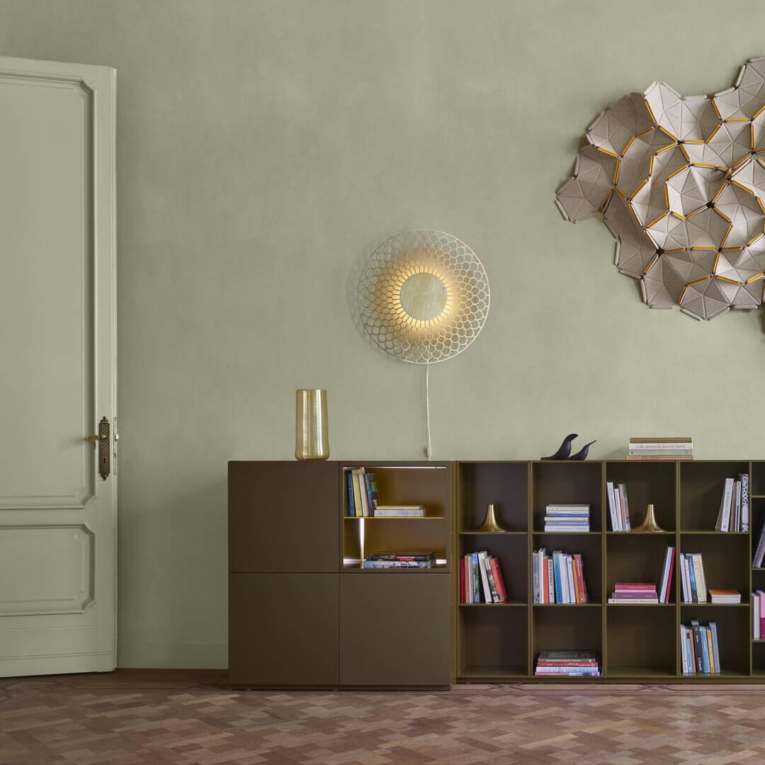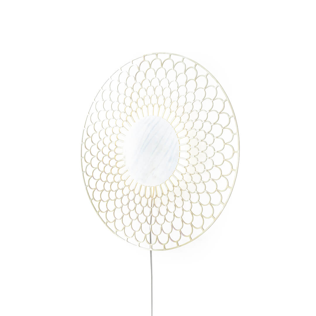 ROSA, ROSA, ROSAS 壁燈 精美鏤空花邊輪廓,採用金屬激光切割,鋼表面鍍鎳鍍金,伴隨LED照明產生虹彩般層次氛圍的光影變化。