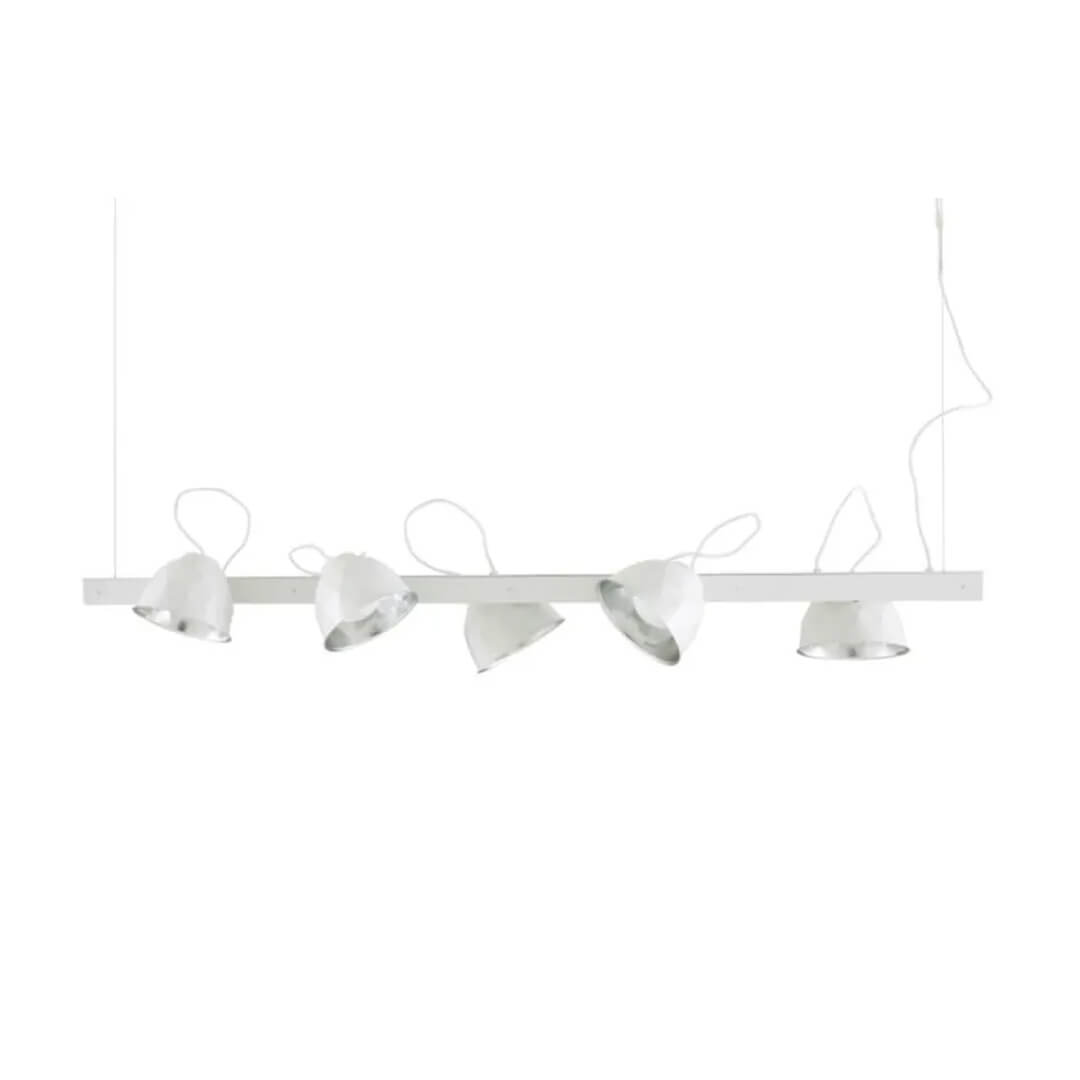 TREPIED 吊燈 110V,緞面白色烤漆鋼結構。壓紋鋁製反射罩,外側緞面白色烤漆,內側陽極處理。白色防眩光燈罩。白色紡織電纜。