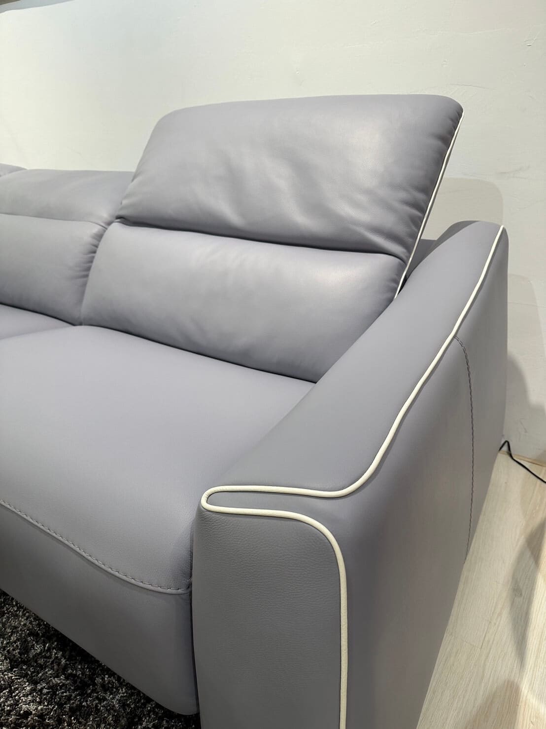 沙發滾邊特別採用白色皮革,與藍色皮革對比之下,凸顯出義大利縫製工藝和層次感。