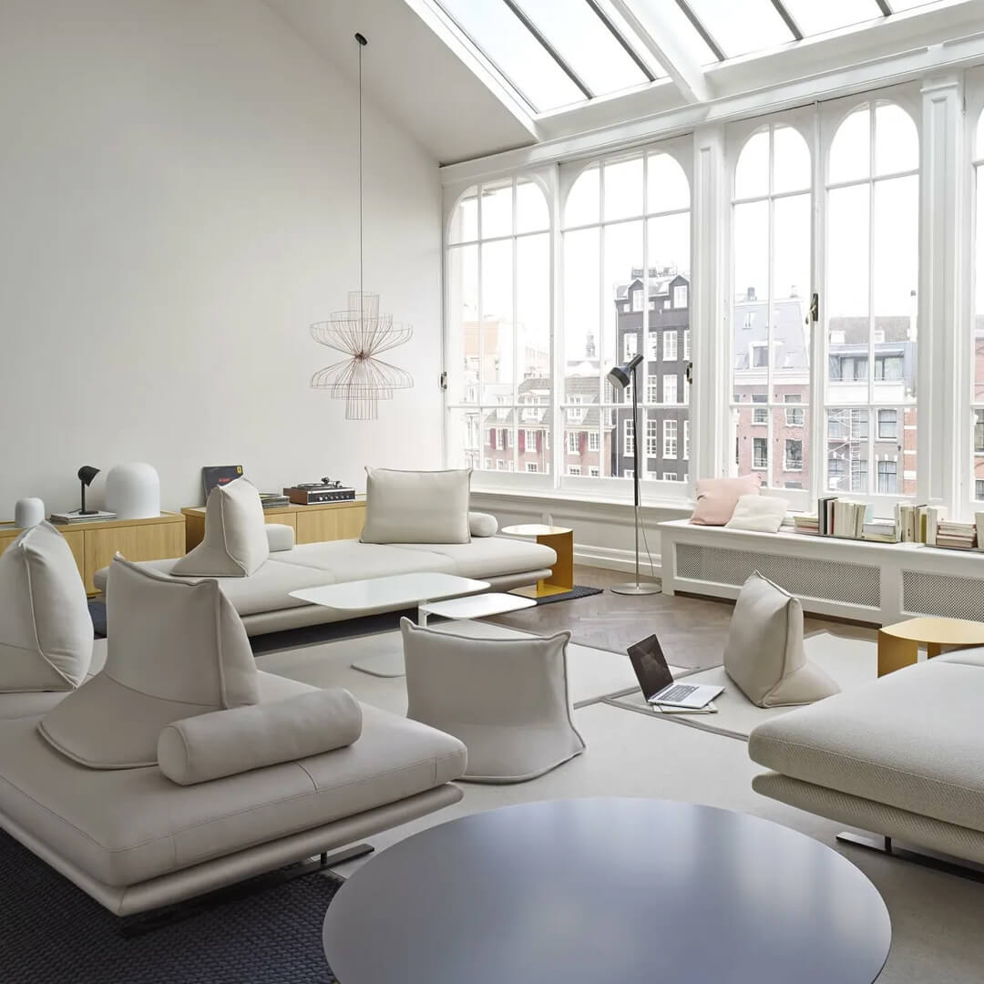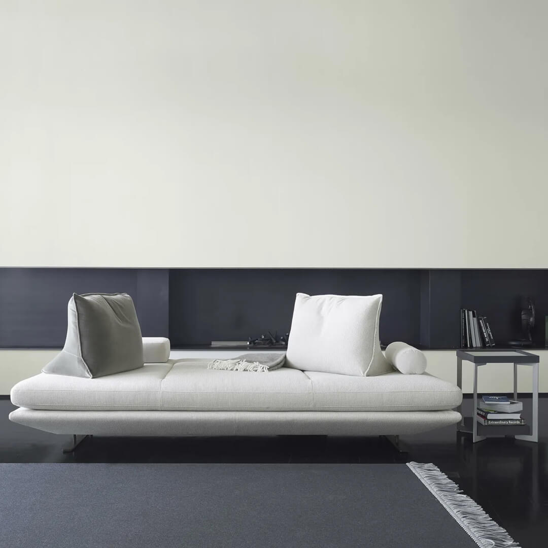 Prado極具設計趣味性的背靠墊,也可以自由悠閒的放置於地板上靠近矮桌的空間,讓您可以悠閒舒適的坐在地板上,而移除背靠墊的淨空大尺寸座位面,鋪上床布墊之後,就是一張提供輕鬆慵懶的床鋪,為室內空間增添了更強的互動性和娛樂性。2015年榮獲德國設計獎金獎殊榮。
