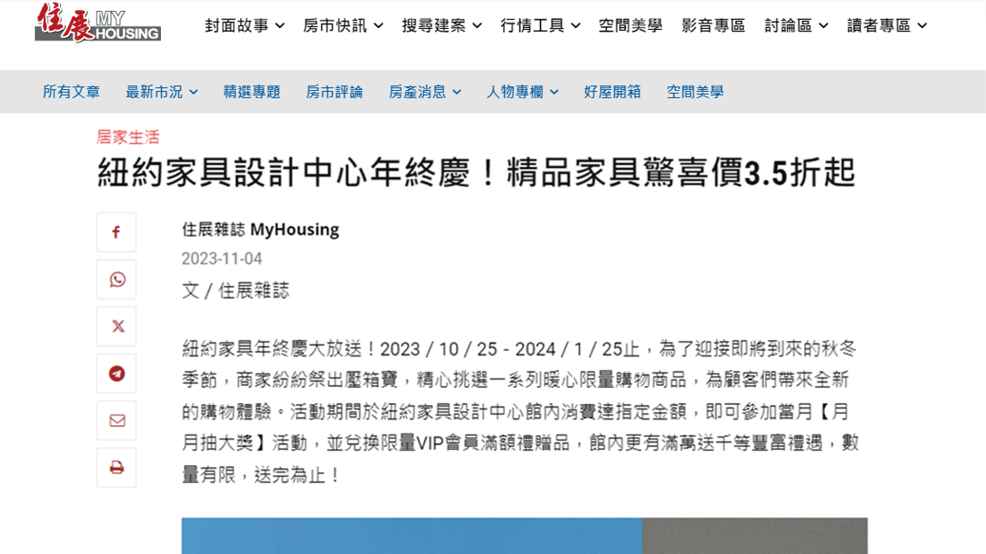 紐約家具設計中心年終慶!精品家具驚喜價3.5折起-非凡新聞