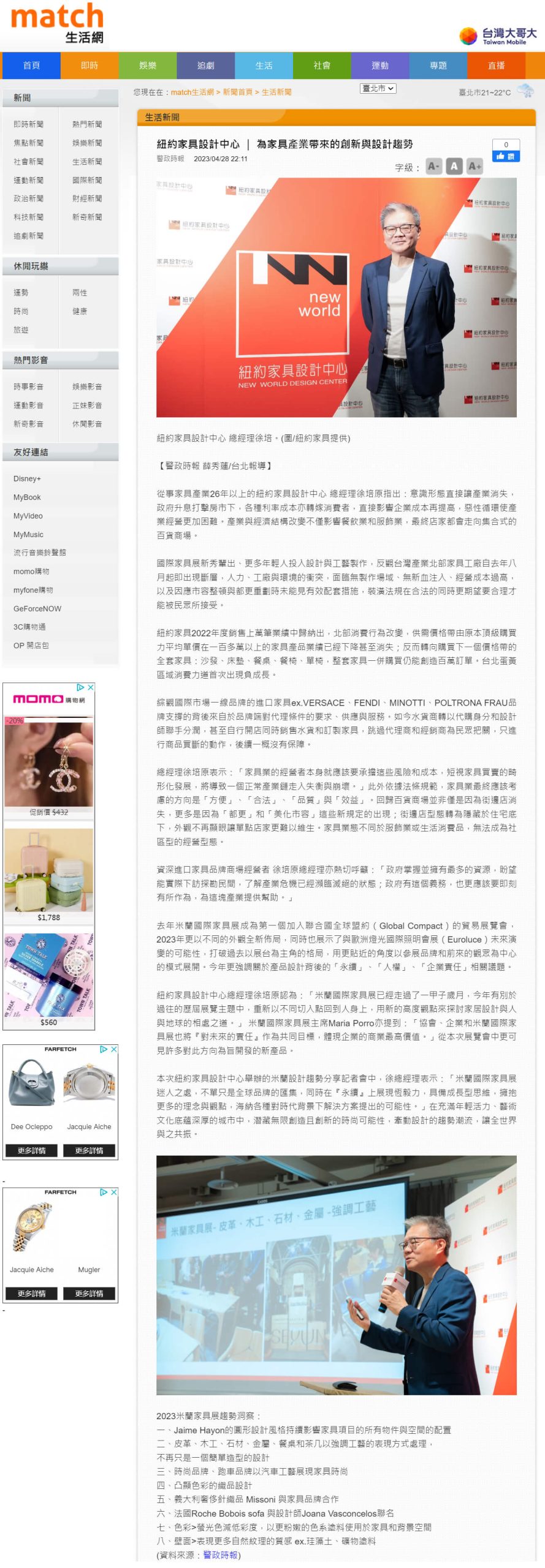 【2023米蘭家具展設計趨勢分享 記者會2023/4/27】沉浸國際精品品牌設計思維 形塑當代居家生活美學