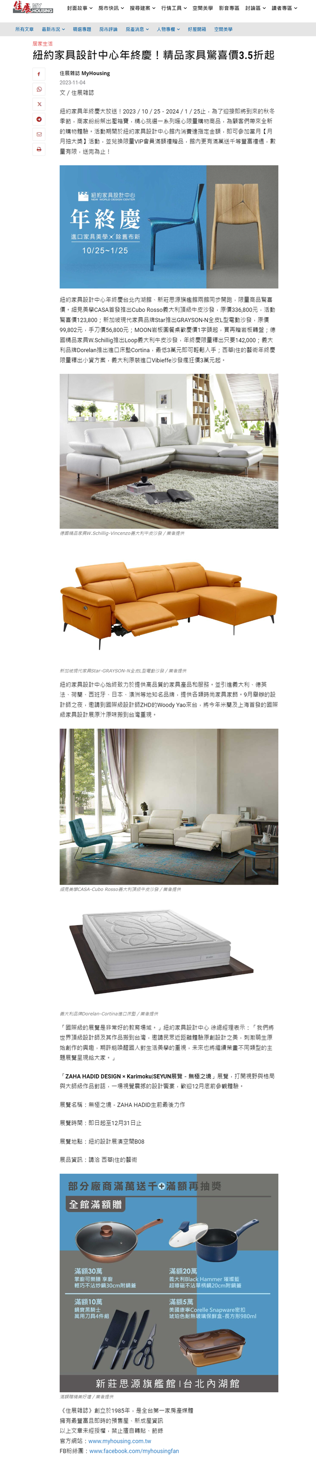 紐約家具設計中心年終慶!精品家具驚喜價3.5折起- 住展雜誌