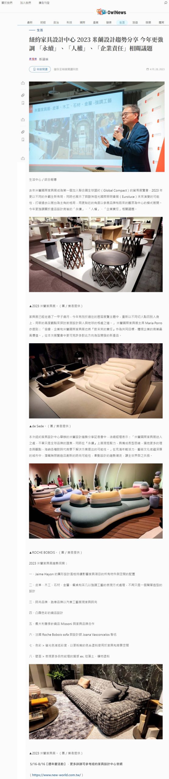 紐約家具設計中心 2023 米蘭設計趨勢分享 今年更強調 「永續」、「人權」、「企業責任」相關議題 -Owlting