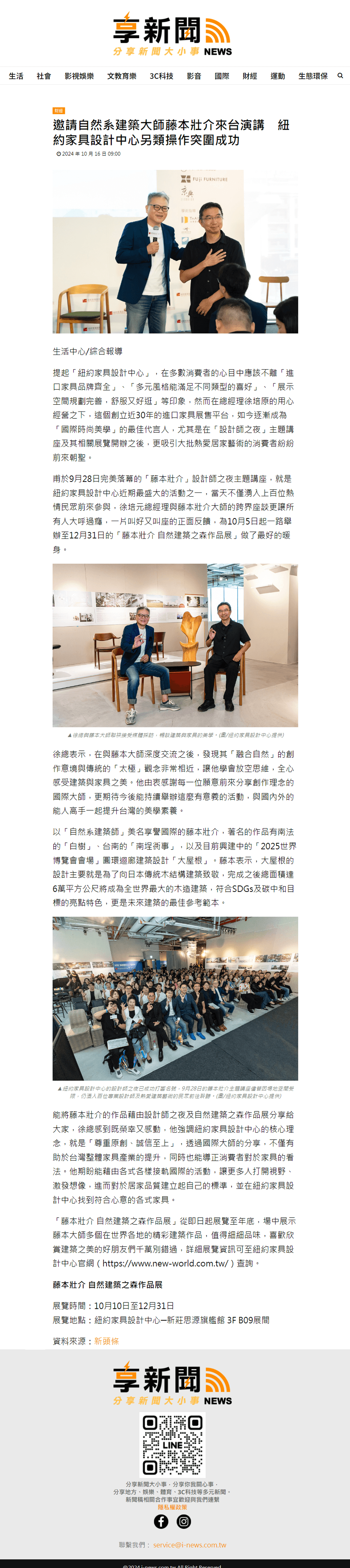 【邀請自然系建築大師藤本壯介來台演講 紐約家具設計中心另類操作突圍成功】